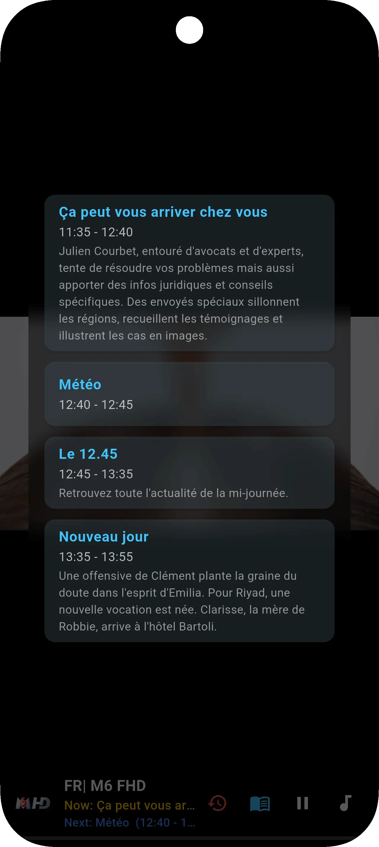 Regardez les chaînes en direct avec un guide riche et des actions rapides.