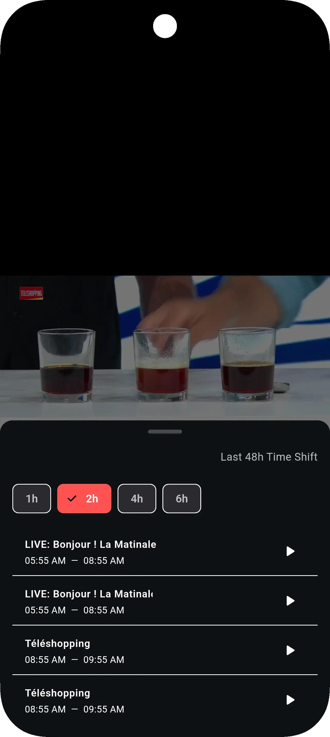 Regardez les chaînes en direct avec un guide riche et des actions rapides.